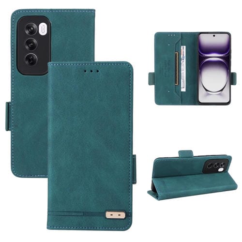 Para Oppo Reno12 Pro Funda de Cuero para Teléfono con Cierre Magnético Global (Verde)