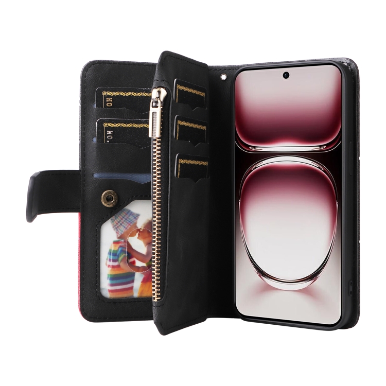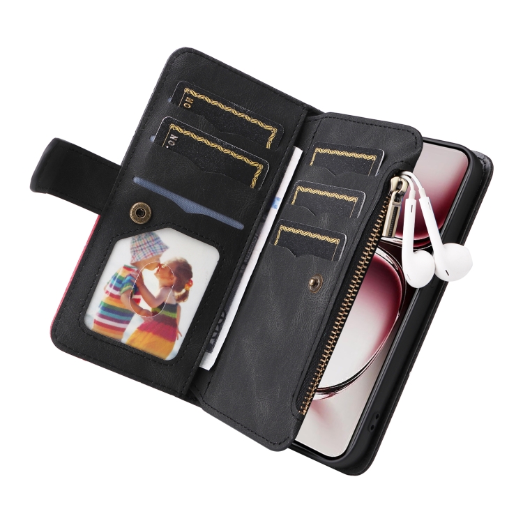 Para Oppo Reno12 Pro Global Dual-Color 9 Ranuras para Tarjetas Estuche para Teléfono de Cuero con Billetera con Cremallera (Negro)