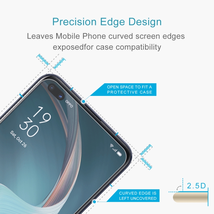 Para Oppo Reno4 Z 5G 50 PCs 0.26mm 9H 2.5D Película de Vidrio Templado