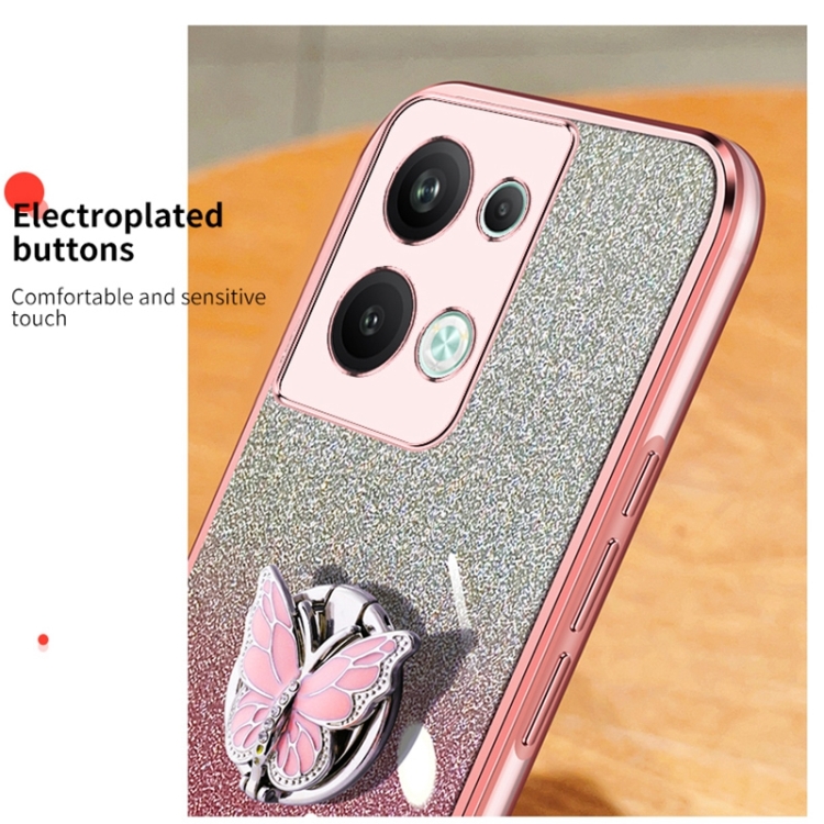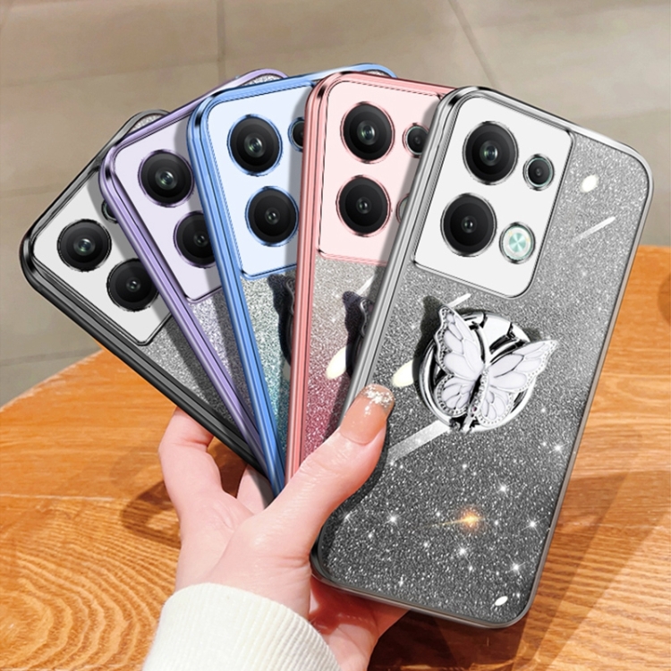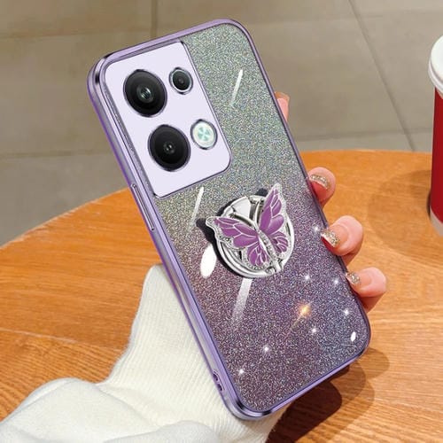 Para Oppo Reno9 Pro + Funda para Teléfono de TPU con Soporte de Mariposa con Brillo Degradado Plateado (Púrpura)