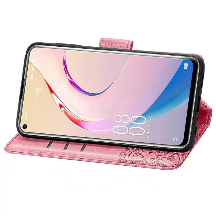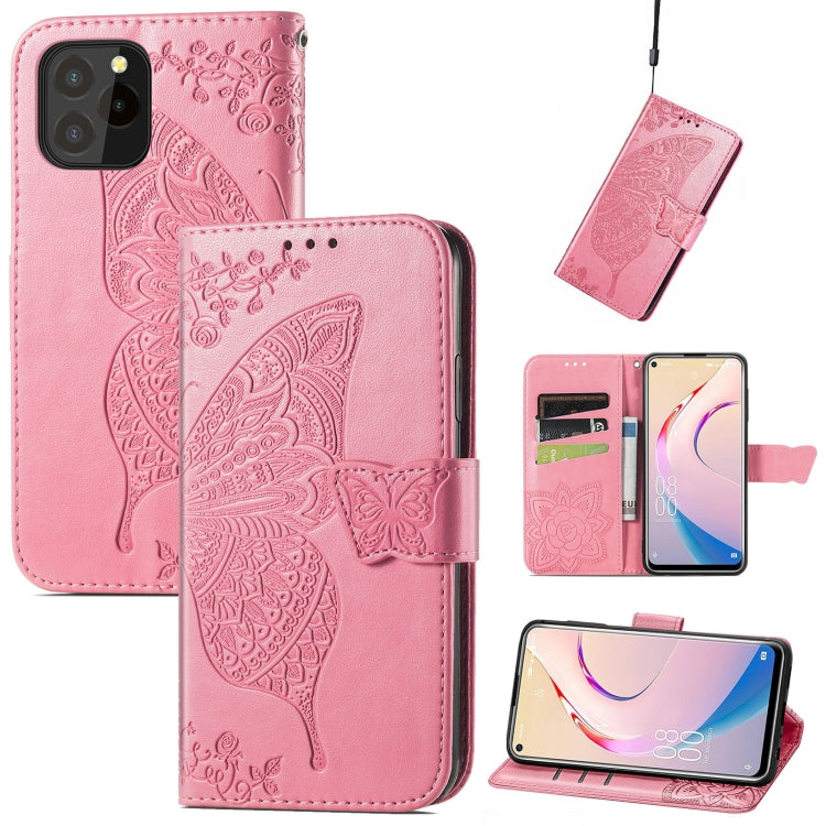 Funda de Cuero para Oukitel C21 Pro Butterfly Love Flower con Soporte, Billetera y Cordón (Rosa)