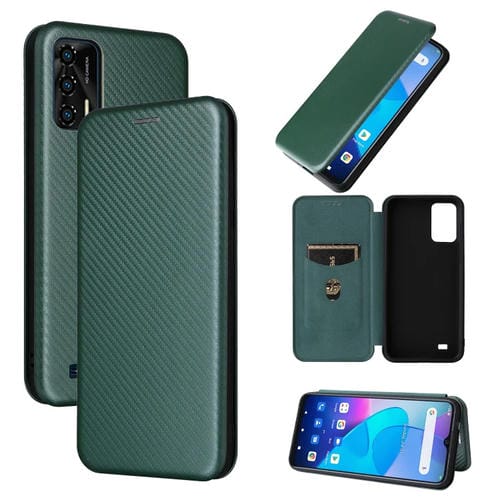 Funda de Cuero para Oukitel C31 con Textura de Fibra de Carbono (Verde)