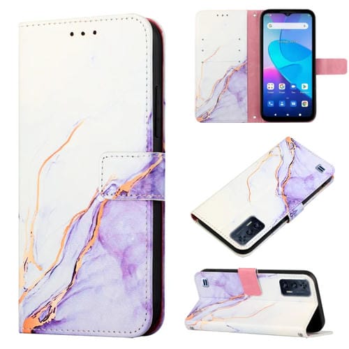 Funda de Teléfono Oukitel C31 Pt003 con Tapa de Cuero y Patrón Mármol (Blanco Púrpura)