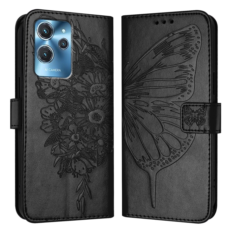 Funda de Cuero para Oukitel C32 con Mariposa en Relieve (Negro)