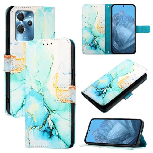 Funda de Cuero para Oukitel C32 Pt003 con Tapa y Patrón de Mármol (Verde)
