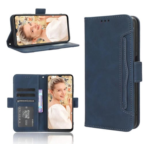 Funda de Cuero para Oukitel C32 con Textura Becerro y Ranuras para Tarjetas (Azul)