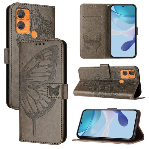 Funda de Cuero para Oukitel C33 con Mariposa en Relieve (Gris)