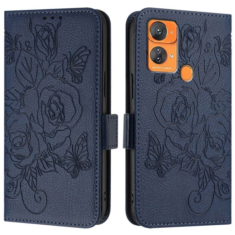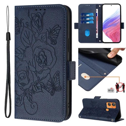 Funda de Cuero Antirrobo RFID para Oukitel C33 con Relieve Rosa (Azul Oscuro)