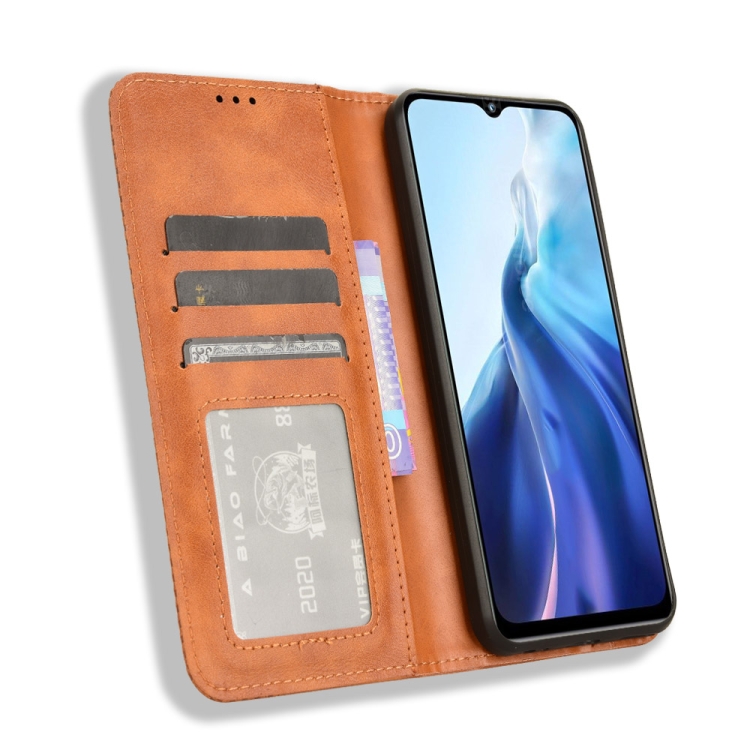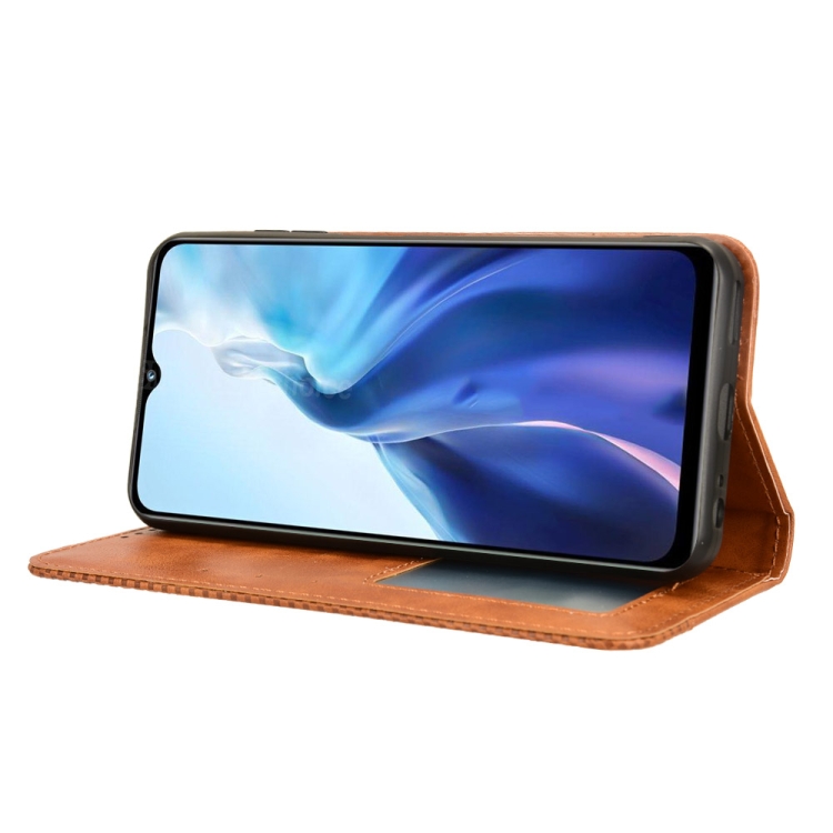 Funda para Teléfono Oukitel C35 C36 Cuero Textura Retro con Hebilla Magnética (Marrón)