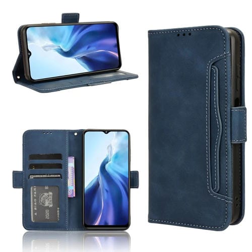 Funda de Cuero para Oukitel C35 / C36 con Textura Becerro y Ranuras para Tarjetas (Azul)