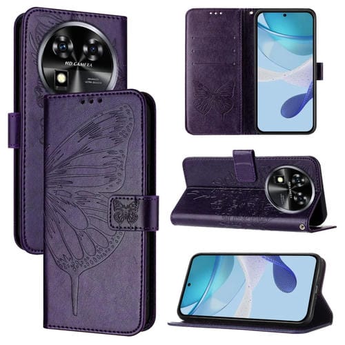 Funda de Cuero para Oukitel C37 con Mariposa en Relieve (Púrpura Oscuro)