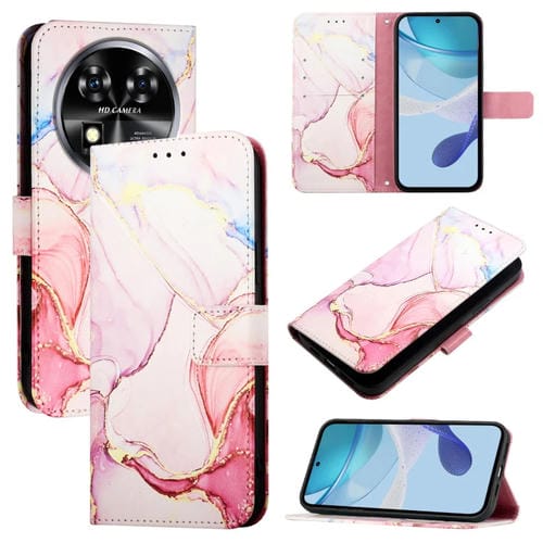 Funda de Cuero con Tapa para Oukitel C37 Pt003 con Patrón de Mármol (Oro Rosa)