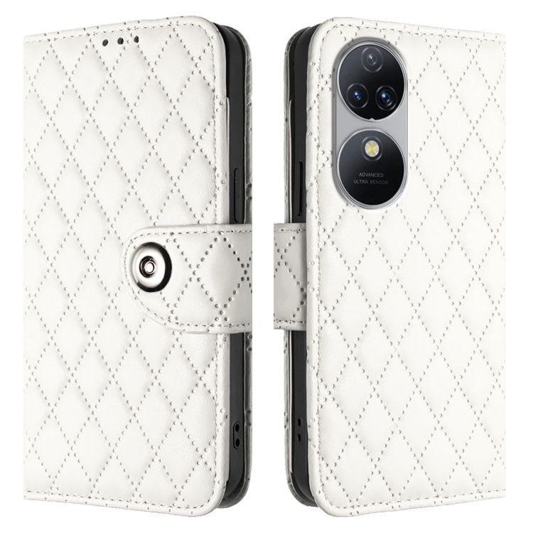 Funda de Cuero para Oukitel C38 con Tapa, Textura Rómbica y Cordón (Blanco)