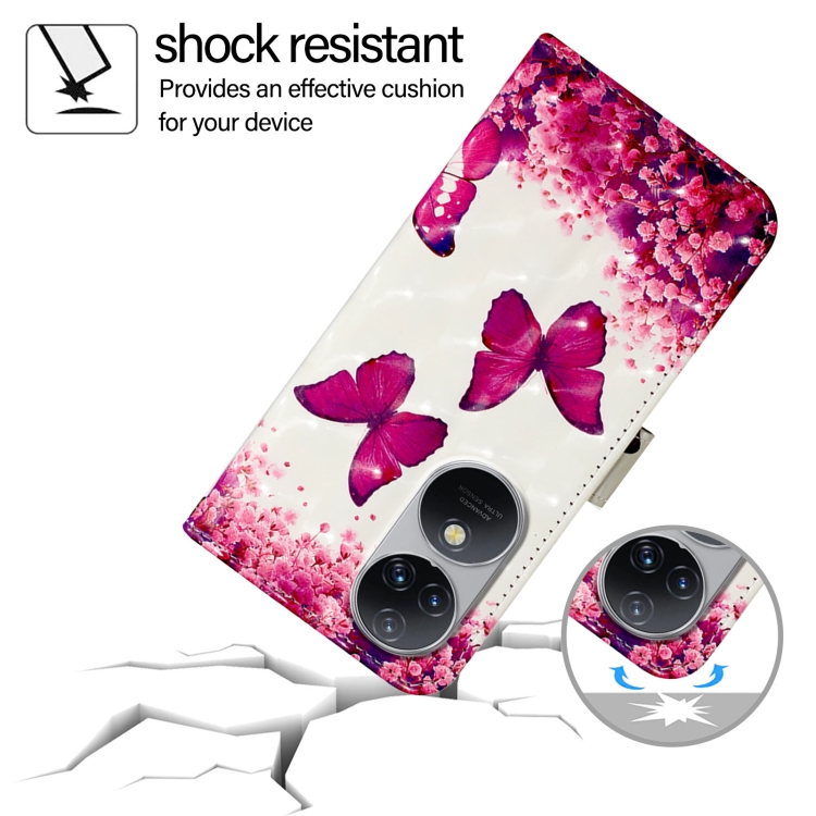 Funda para Oukitel C38 de Cuero con Tapa Horizontal y Pintura 3D (Mariposa Rosa)