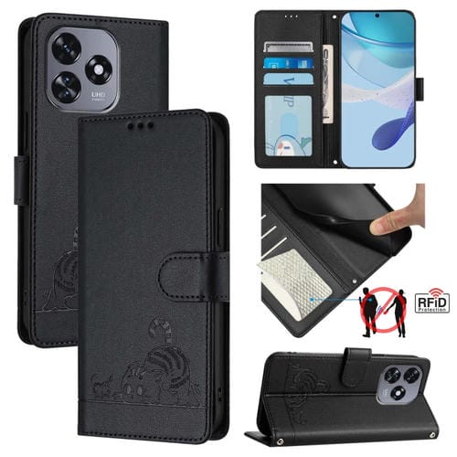 Estuche para Oukitel C51 Cat Rat de Cuero RFID con Patrón en Relieve y Cordón (Negro)