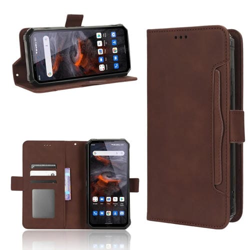 Funda de Cuero para Oukitel Wp19 con Textura Becerro y Ranuras para Tarjetas (Marrón)