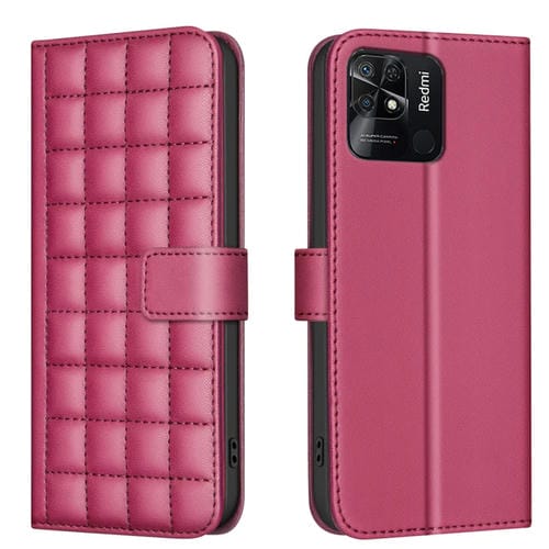 Para Redmi 10C Funda de Cuero con Textura Cuadrada (Rojo)