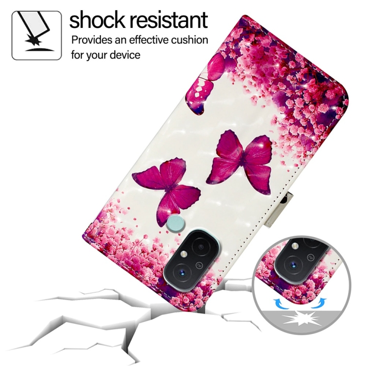 Para Redmi 12C / Redmi 11A Funda para Teléfono de Cuero con Tapa Horizontal con Pintura 3D (Mariposa Rosa)