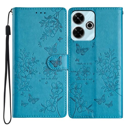 Para Redmi 13 4G Funda de Cuero para Teléfono con Mariposas y Flores (Azul)