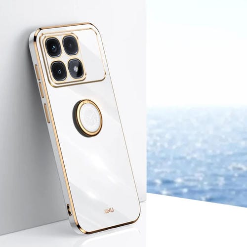 Para Redmi K70 Ultra Xinli Funda a Prueba de Golpes de TPU con Borde Dorado y Revestimiento 6D Recto con Soporte para Anillo (Blanco)