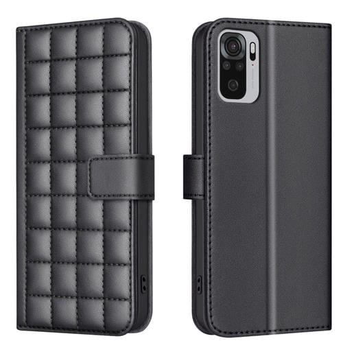 Para Redmi Note 10 4G / Note 10S Funda de Cuero para Teléfono con Textura Cuadrada (Negro)