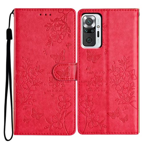 Para Redmi Note 10 Pro Funda de Cuero para Teléfono con Mariposas y Flores (Rojo)