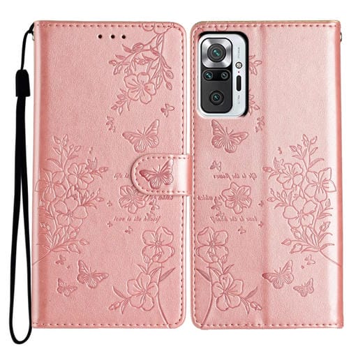 Para Redmi Note 10 Pro Max Funda de Cuero para Teléfono con Mariposas y Flores (Oro Rosa)