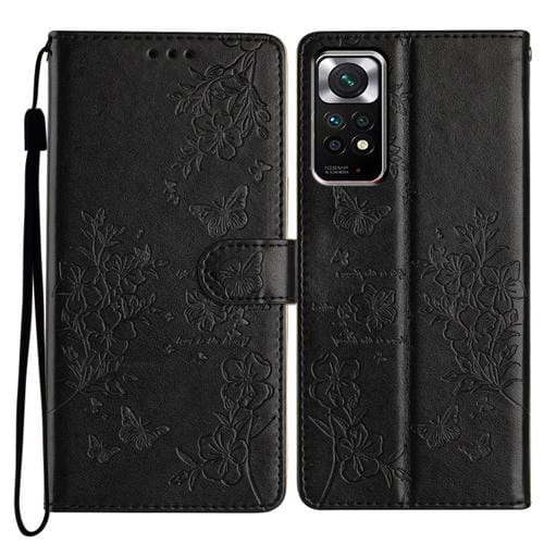 Para Redmi Note 11 4G Funda de Cuero para Teléfono con Mariposas y Flores Globales (Negro)