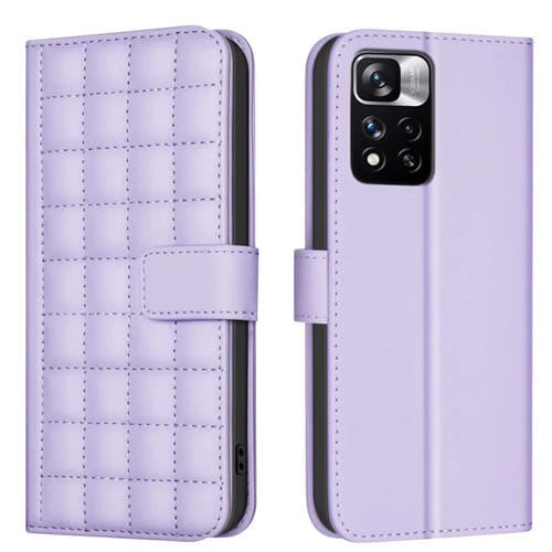 Para Redmi Note 11 Pro 5G / 4G Funda de Cuero para Teléfono con Textura Cuadrada Global (Púrpura)
