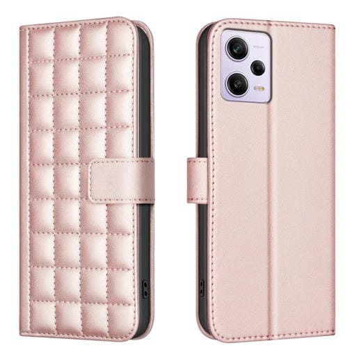 Para Redmi Note 12 Pro Funda de Cuero para Teléfono con Textura Cuadrada Global (Oro Rosa)
