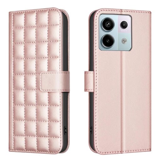 Para Redmi Note 13 Pro 4G Funda de Cuero para Teléfono con Textura Cuadrada Global (Oro Rosa)
