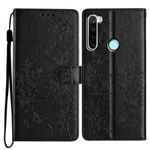 Para Redmi Note 8T Funda de Cuero para Teléfono con Mariposas y Flores (Negro)