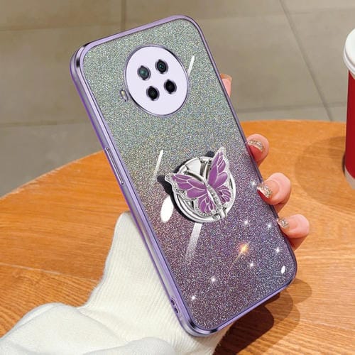 Para Redmi Note 9 Pro 5G Funda para Teléfono de TPU con Soporte de Mariposa con Brillo Degradado Plateado (Púrpura)