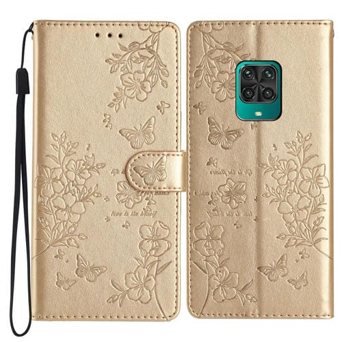 Para Redmi Note 9 Pro Funda de Cuero para Teléfono con Mariposas y Flores (Dorado)