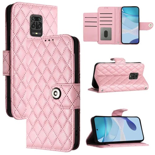 Para Redmi Note 9 Pro / Note 9 Pro Max Funda para Teléfono con Tapa de Cuero con Textura Rómbica y Cordón (Rosa)