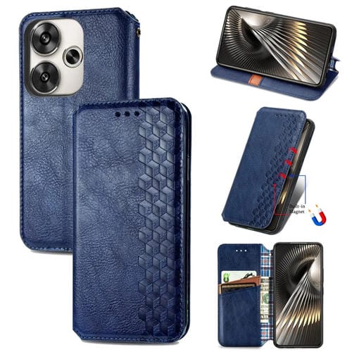 Para Redmi Turbo 3 5G Cubic Grid Funda de Teléfono de Cuero Magnético Prensado (Azul)