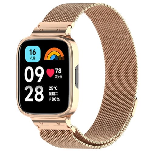 Correa Milan Metal 2 en 1 con Marco para Redmi Watch 3 Lite y Watch 3 Active (Oro Rosa)