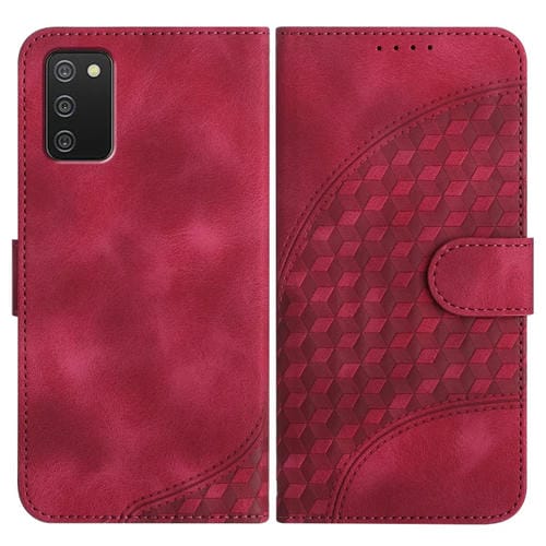 Funda de Cuero Samsung Galaxy A02S Yx0060 con Relieve y Cabeza de Elefante con Cordón (Rojo Rosa)