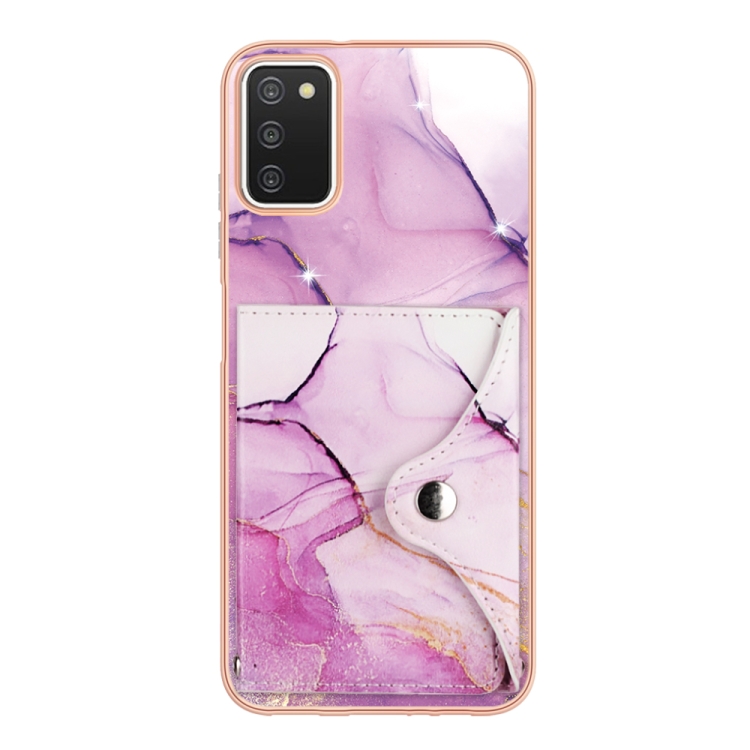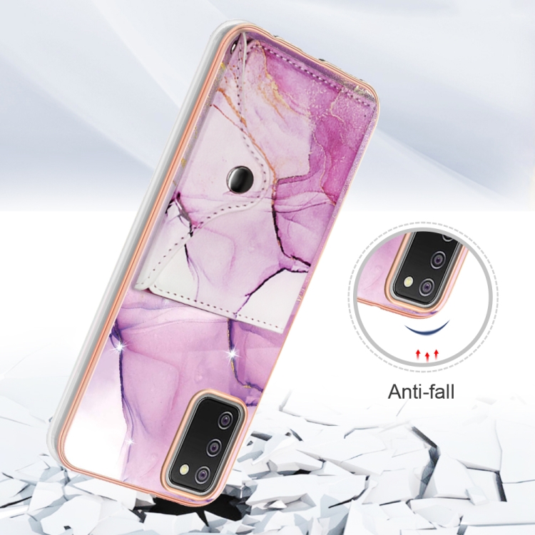 Estuche para teléfono Samsung Galaxy A02S Versión Estadounidense con ranura para tarjeta IMD patrón Mármol (Oro Rosa Púrpura)