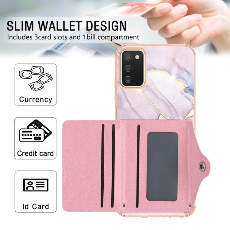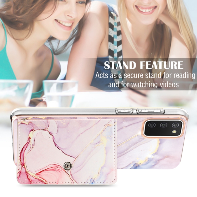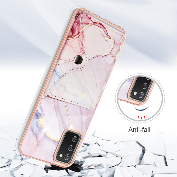 Estuche para Teléfono Samsung Galaxy A02S Versión UE con Ranura para Tarjeta Imd y Patrón de Mármol (Oro Rosa)
