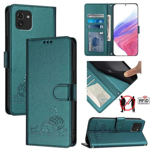 Estuche para Teléfono Samsung Galaxy A03 166mm Cuero Rfid Patrón en Relieve con Cordón (Verde Pavo Real)