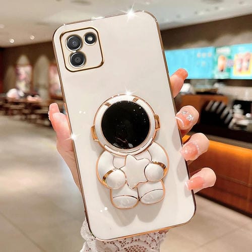 Estuche para Teléfono Samsung Galaxy A03 Embrace Stars con Soporte para Astronauta Galvanizado (Blanco)