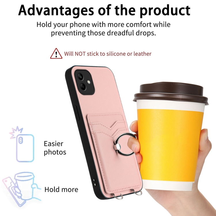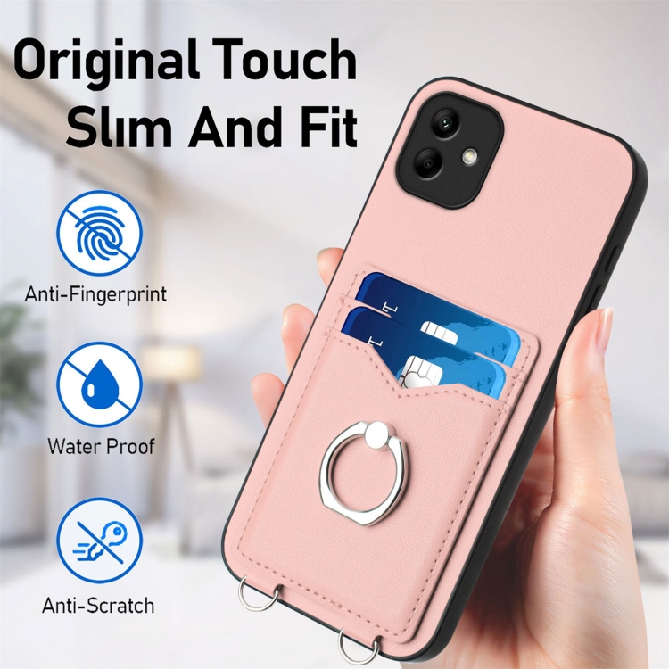 Estuche para Teléfono Samsung Galaxy A04 4G R20 con Soporte para Tarjeta con Anillo (Rosa)
