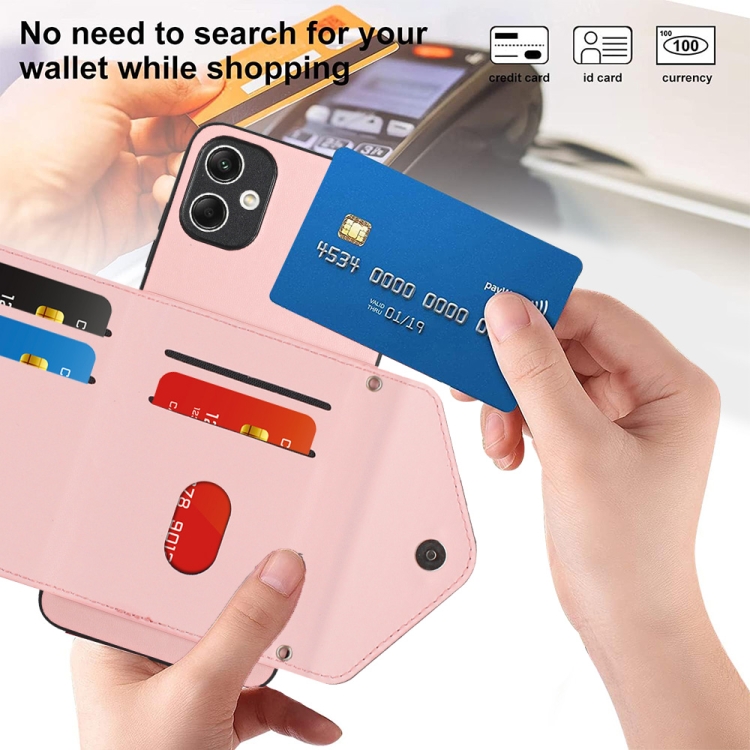 Funda para Teléfono Samsung Galaxy A04E 4G M04 4G Rfid con Bolsa Tarjetas Textura Rómbica Cordón Largo (Oro Rosa)