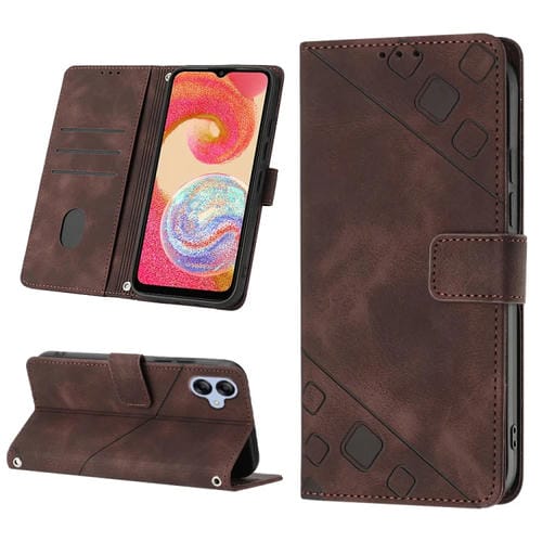 Estuche para Teléfono Samsung Galaxy A04E F04 M04 Cuero En Relieve con Tacto de Piel (Marrón)