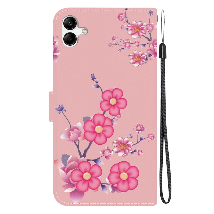 Funda para Teléfono Samsung Galaxy A04E F04 M04 Cuero Dibujo Coloreado Textura Cristal (Flores de Cerezo)
