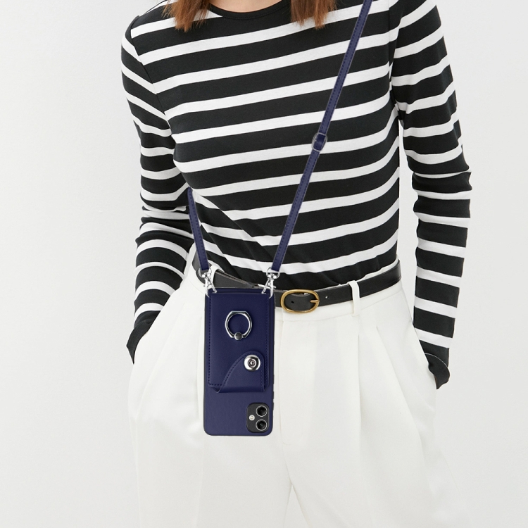 Funda para Teléfono Samsung Galaxy A04E M04 F04 4G con Soporte para Anillo Bolsa para Tarjeta y Cordón Largo (Azul)