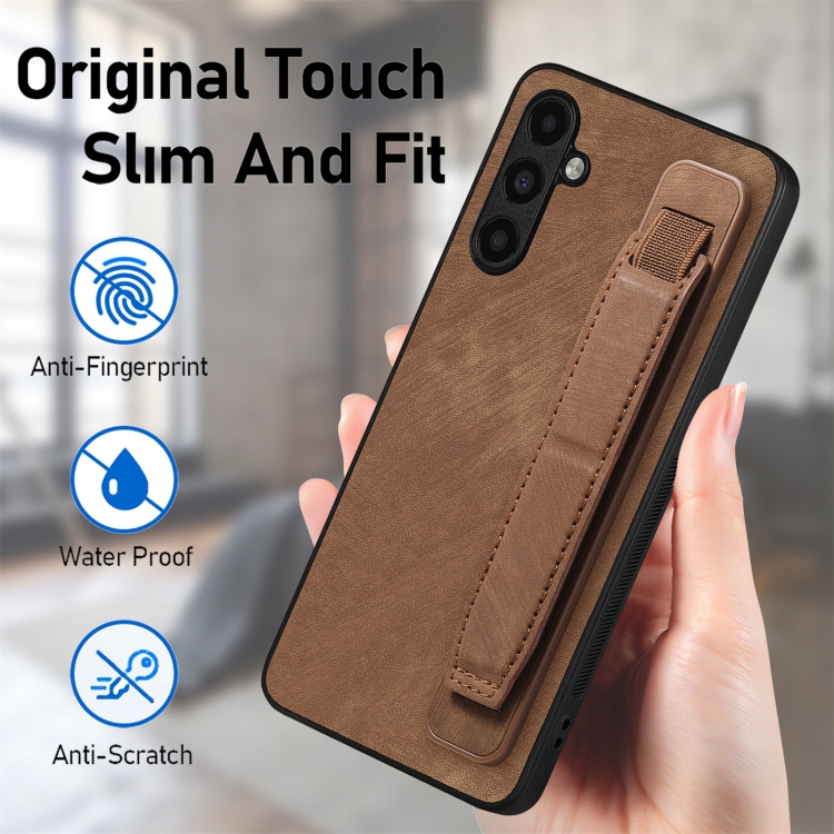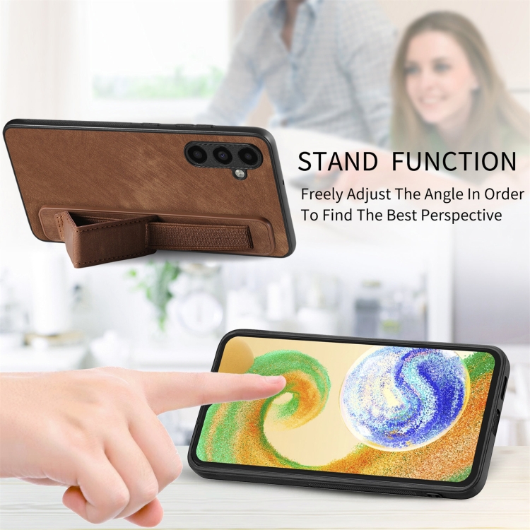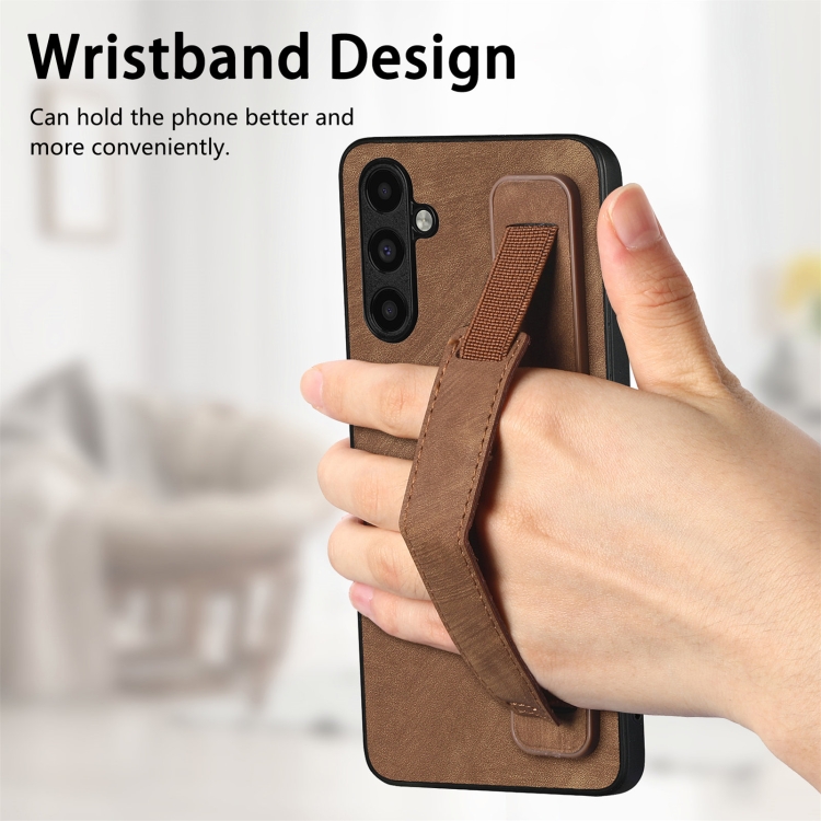 Funda Retro Samsung Galaxy A04S con Soporte de Pulsera y Parte Trasera de Cuero (Marrón)