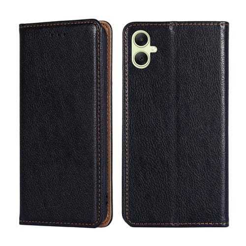 Estuche para Teléfono Samsung Galaxy A05 4G Cuero Magnético Color Sólido Aceite Brillante (Negro)