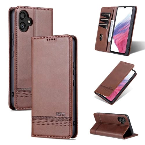 Funda para Teléfono Samsung Galaxy A05 Azns Cuero con Tapa Textura de Becerro Magnética (Marrón Oscuro)
